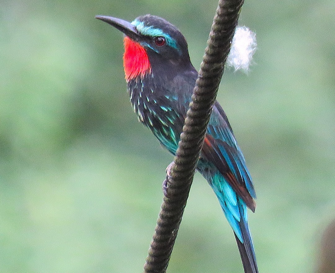 Early search for Nkulengu Rail and White-breasted Guineafowl. Continue into dense rainforest for African Finfoot, Red-fronted Antpecker, Shining-blue Kingfisher, and Dusky Long-tailed Cuckoo.